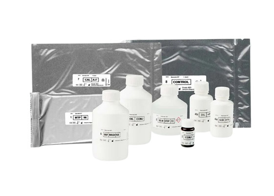 Labsystems Diagnostics Neonatal IRT FEIA is a fluorometric enzyme immunoassay for the quantitative measurement of human immunoreactive trypsinogen (IRT) from dried blood spot samples. IRT is eluted from blood disks and forms a sandwich complex between a solid-phase antibody that recognizes Trypsinogen 1 (IRT1) and an enzyme-labeled antibody tagged with horseradish peroxidase (HRP). This method delivers precise and reproducible results essential for newborn screening programs to identify potential cystic fibrosis cases early.