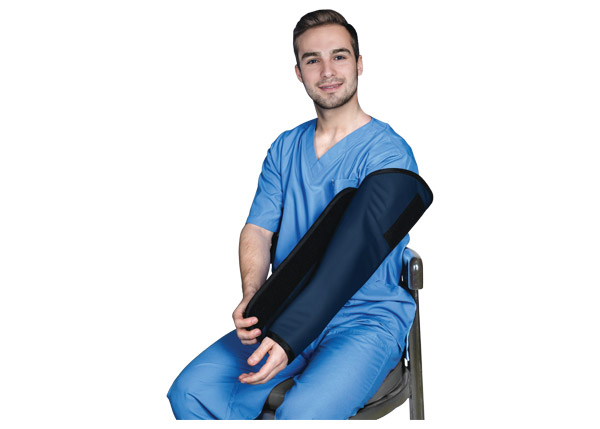 Provides localized protection for arms exposed to scatter radiation during interventional procedures.
