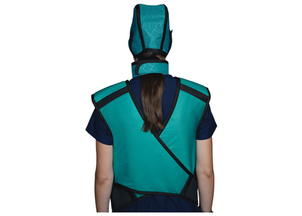 Designed to protect the cranial region from scatter radiation during interventional procedures.