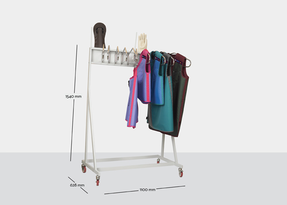 Protective apparel requires proper storage to maintain hygiene and extend shelf life. The Mobile Storage System with Hangers provides a compact, mobile solution for organizing multiple pairs of apparel and accessories efficiently. Easy to install and move, it maximizes space without compromising safety.